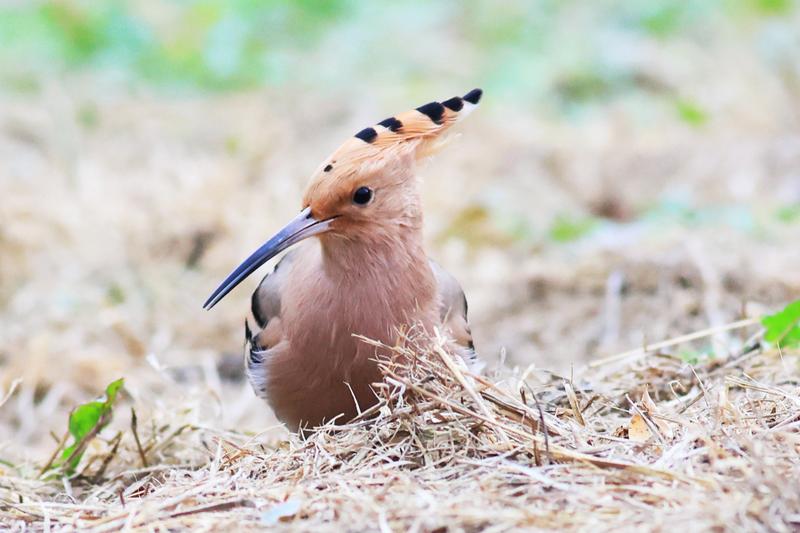 在公园草丛觅食的戴胜鸟。新华网发(郭连友摄)